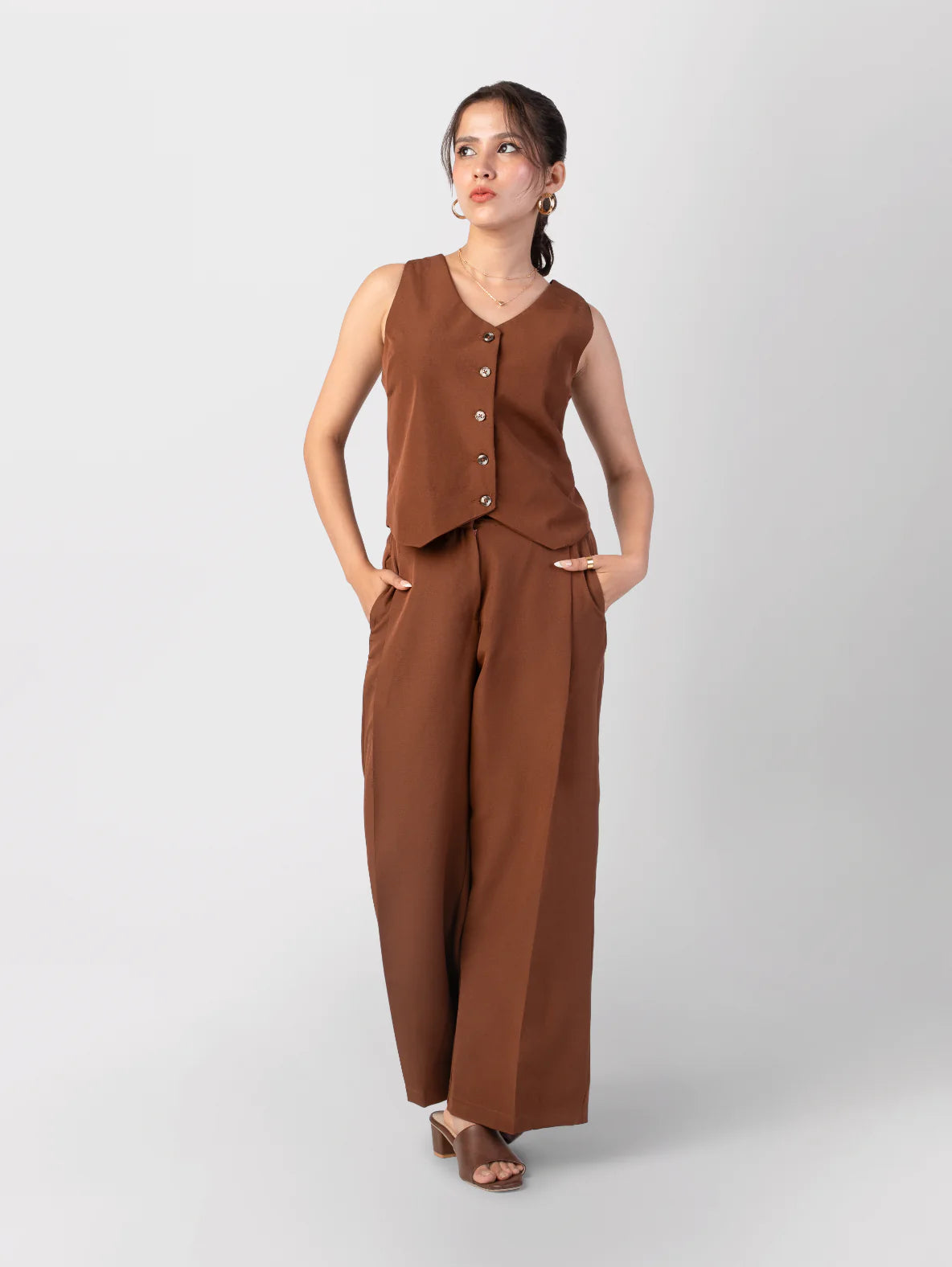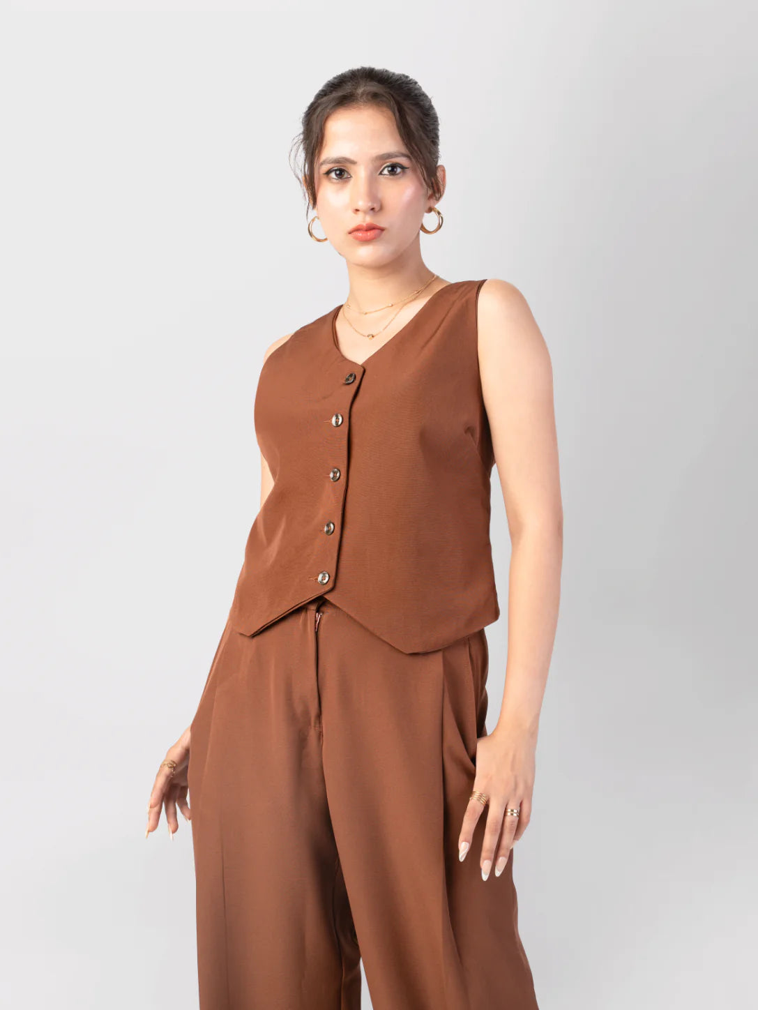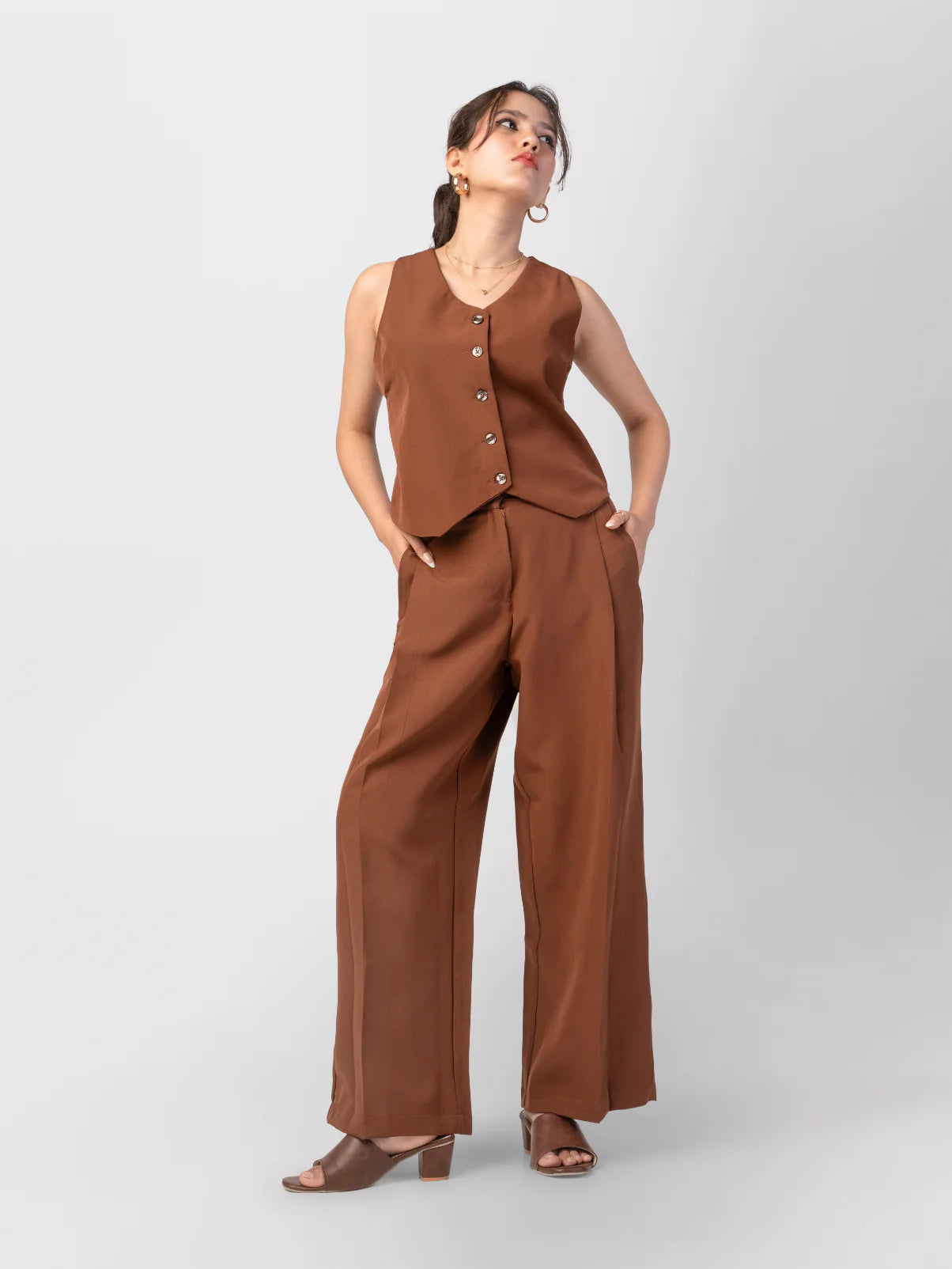 2 Coords, 4 Products : Mocha Mousse (Waistcoat + Wide-Leg Trousers) + Boho Chic (Crop Top + A-line skirt)